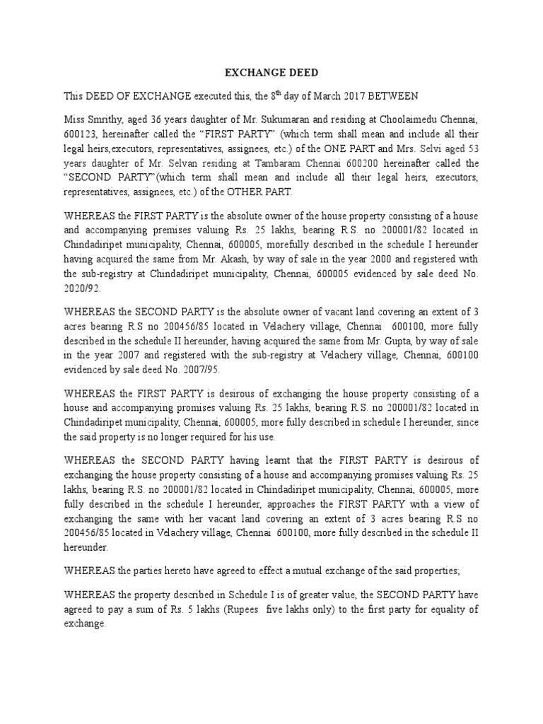 Land sale deed format in english.